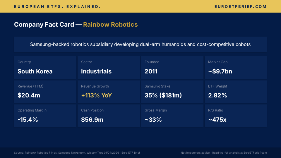 This is Part 3 of 4 in our deep look at the WisdomTree Physical AI, Humanoids and Drones UCITS ETF (ISIN: IE000LCKJ888). In Part 1, we covered the theme, the fund, and why it matters. In Part 2, we went inside Ubtech Robotics. Here, we look at Samsung’s robotics bet. Subscribe for free so you don’t miss the rest.
